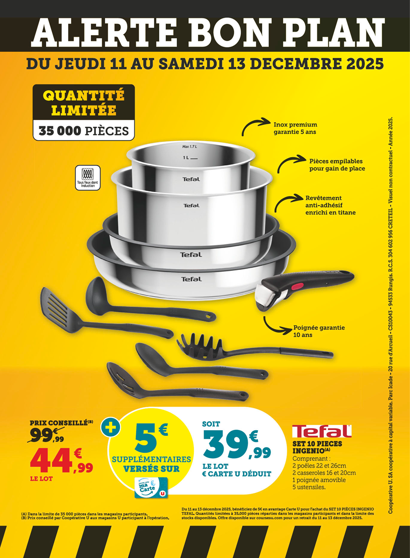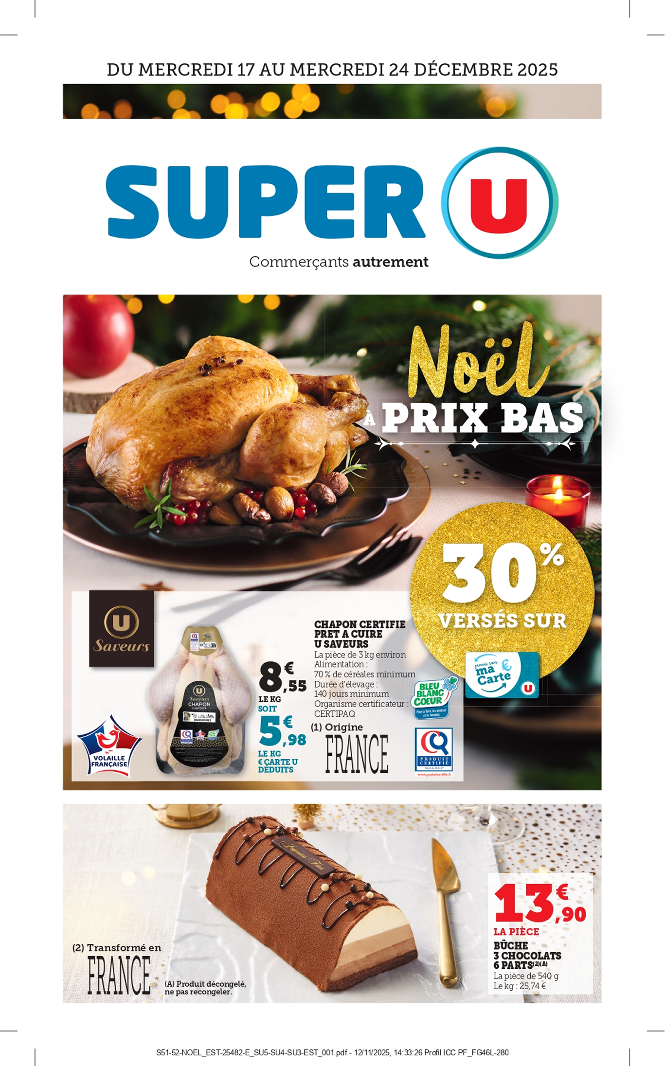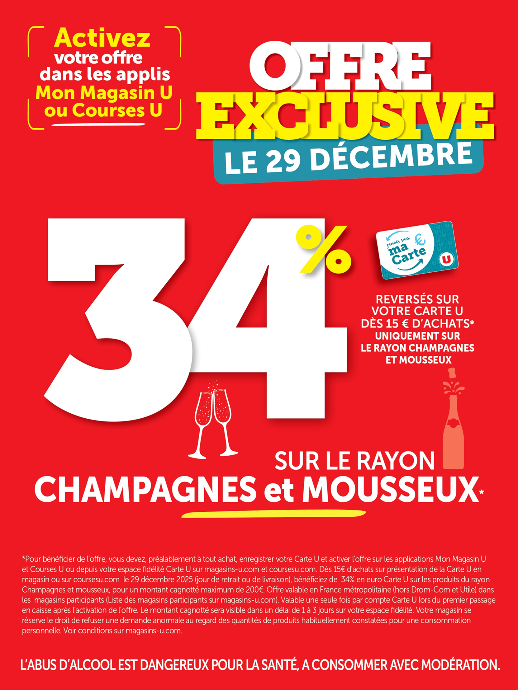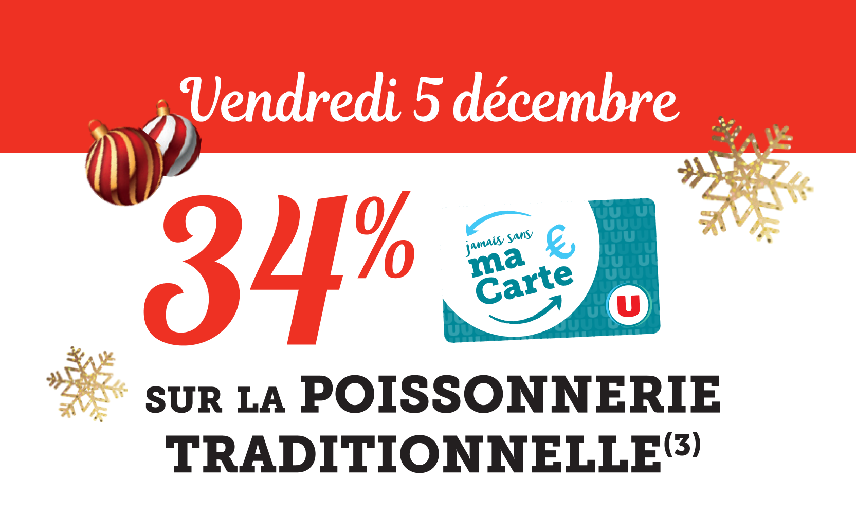 *Voir conditions en magasin. (1) Bon d’achat émis du 08 au 12/12 pour 20€ d’achats valable le samedi 13/12. (2) Bon d’achat émis du 15 au 19/12 pour 20€ d’achats valable le samedi 20/12. (3) Crédités en € carte U sur les achats du rayon mentionné et balisé en magasin